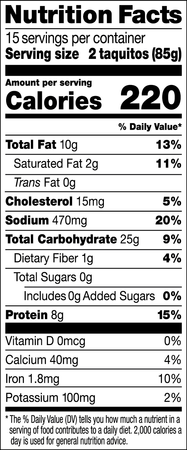 – When preparing 6 taquitos, increase heating time to 2:30 to 3 minutes.