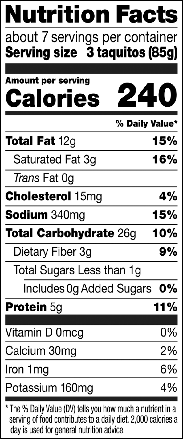 – When preparing 6 taquitos, increase heating time to 2 to 2 1/2 minutes.